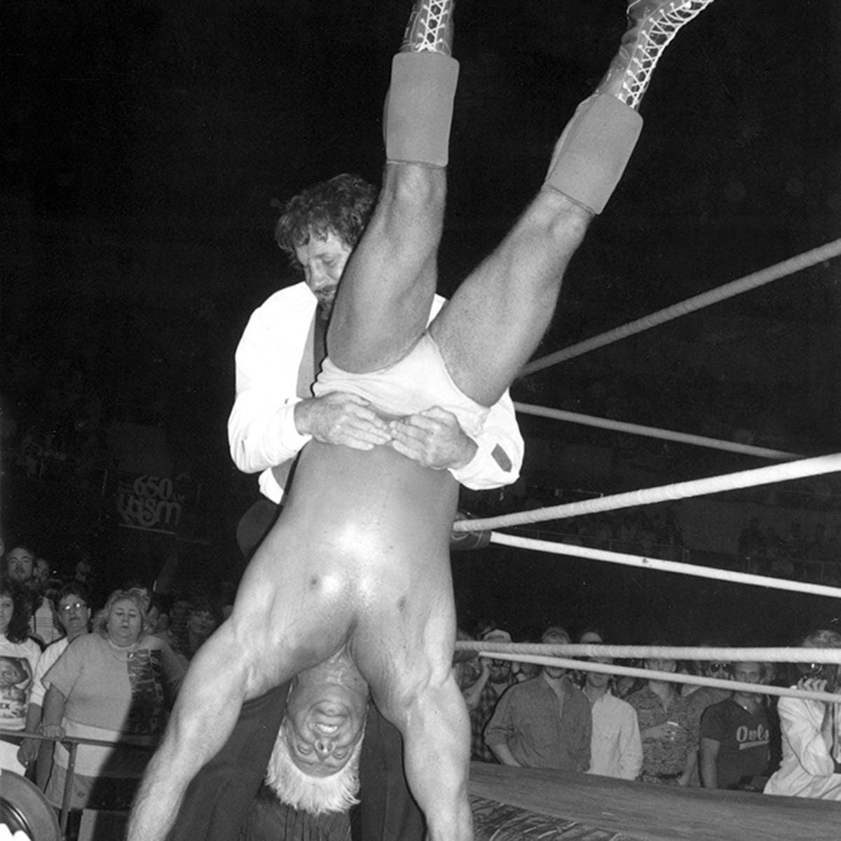 Because of that, the dirty secret of this match is that Flair’s performance, by very design of the match’s narrative, outshines the Funker’s. Flair is relentless in this bout, attaining “force of nature” status in the ring. He doesn’t do anything too fancy too, simply reacts and keeps fighting but does it all so goddamn well, it’s impossible to ignore. Instead of punching like a blue collar babyface, he fires off some of the most brutal chops on that side of the Pacific—real chest bruisers that seem to stun Funk in his tracks at every turn. Fittingly, the context of the match allows Flair to indulge in some more heelish tactics as well, without ever losing the moral high ground. When he starts to choke Funk brutally down on the mat in the first few moments, he’s pretty much justified in trying to punish a man who has hounded him and threatened his livelihood for six months in a row now.