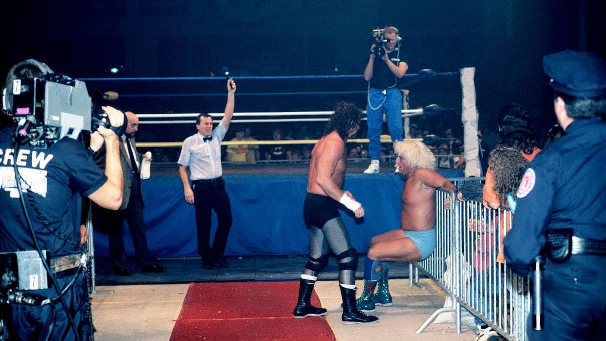 By attacking Flair at WrestleWar and making this match so immediately personal and heated, he unleashed a truly dangerous side of Flair. Fans of Flair’s NWA World Championship reigns have a general idea of how he approaches these matches—both as a character and as a performer. There’s a simple set formula Flair goes to that involves an early babyface shine, an extended period of control by Flair on the mat, all building up to a big comeback from the babyface that Flair bumps like a madman for.